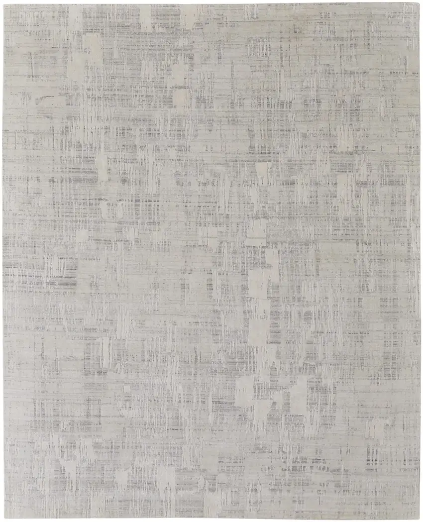 Ivory and Gray Abstract Hand Woven Worn Faded Area Rug