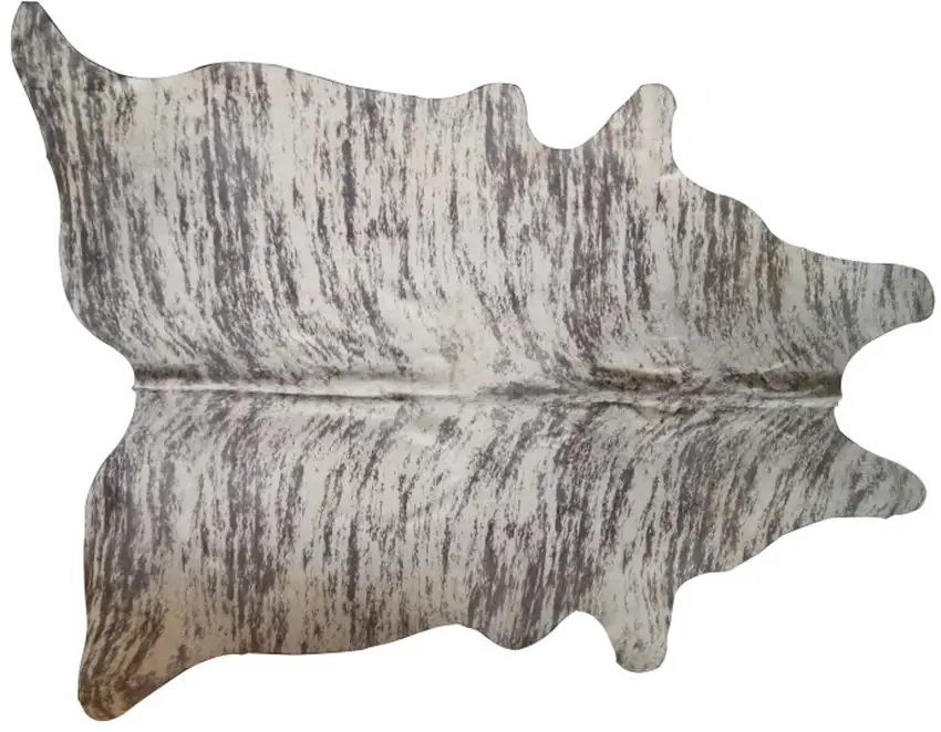 Ivory and Gray Cowhide Striped Hand Knotted Area Rug