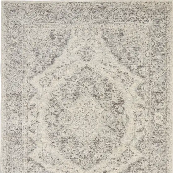 Ivory And Gray Floral Medallion Distressed Area Rug