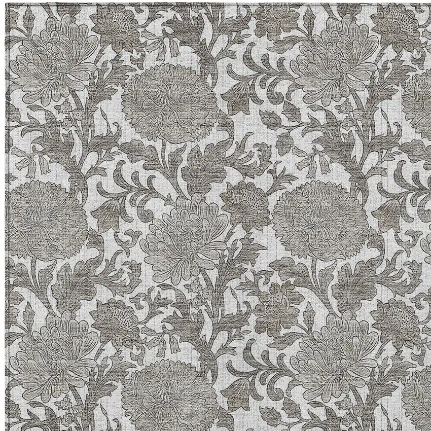 Ivory And Gray Floral Washable Indoor Outdoor Area Rug