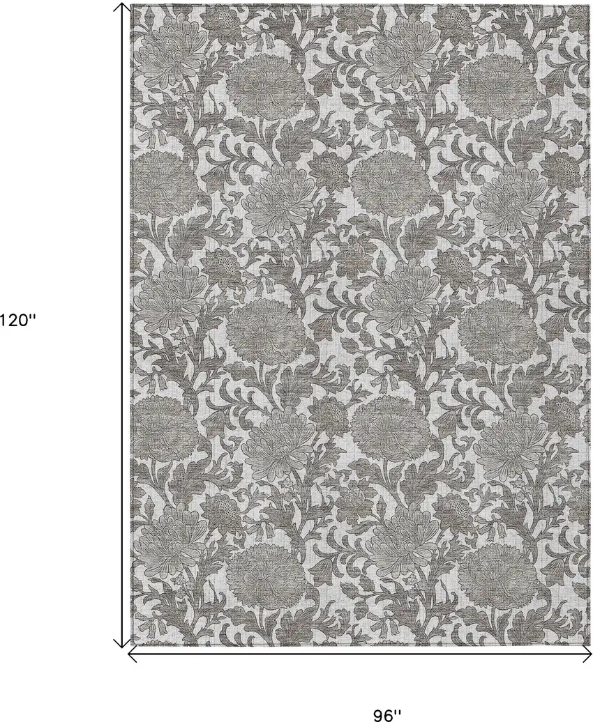Ivory And Gray Floral Washable Indoor Outdoor Area Rug