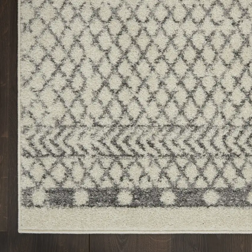 Elevate your living space aesthetics with this beautifully designed rug boasting an alluring ivory and gray geometric design. Thanks to its classic style, it can seamlessly blend with various home decor themes.