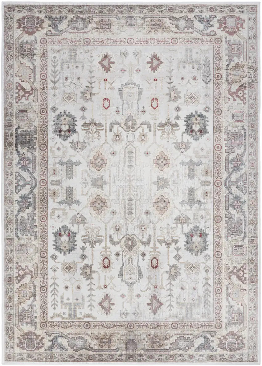 Ivory and Gray Oriental Distressed Non Skid Area Rug