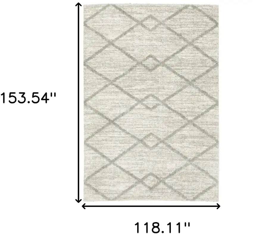 Ivory And Grey Geometric Shag Power Loom Stain Resistant Area Rug