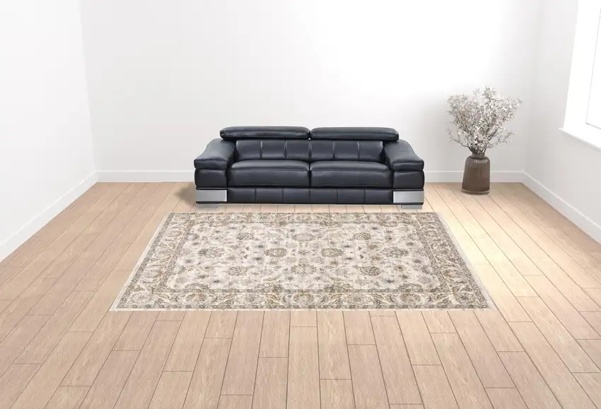 Experience the luxury of sinking your toes into its plush pile, and revel in the peace of mind that comes with knowing you've invested in a rug that surpasses expectations. Delight in the transformation of your home as it blossoms into a place of beauty and tranquility with our Ivory and Grey Oriental Power Loom Stain-Resistant Area Rug with Fringe.