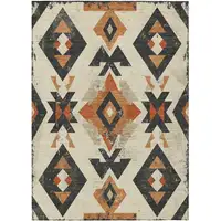 Ivory And Light Gray Geometric Washable Indoor Outdoor Area Rug
