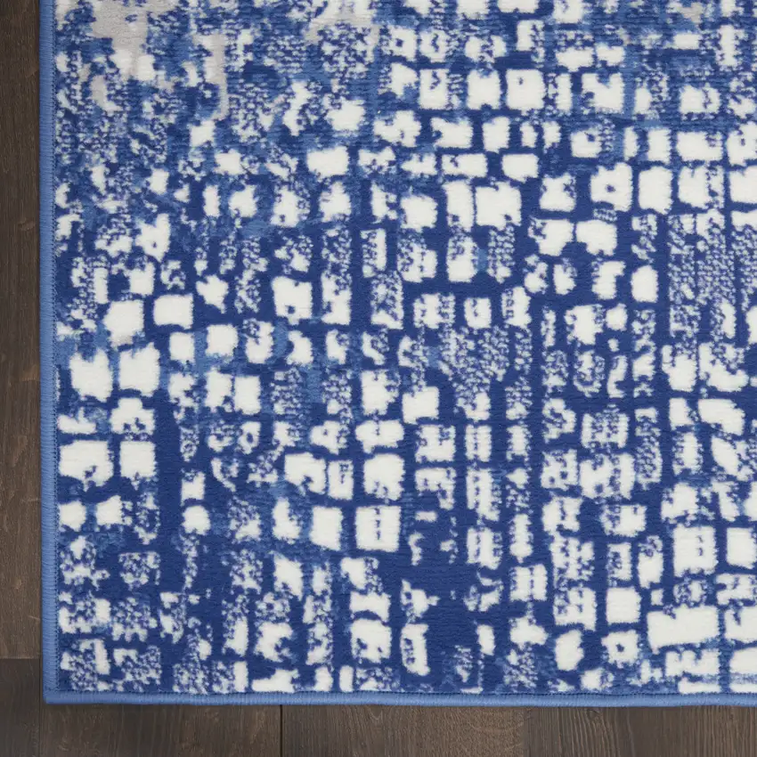 Ivory and Navy Blue Abstract Distressed Non Skid Area Rug