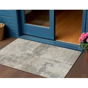 Ivory And Navy Blue Abstract Washable Indoor Outdoor Area Rug