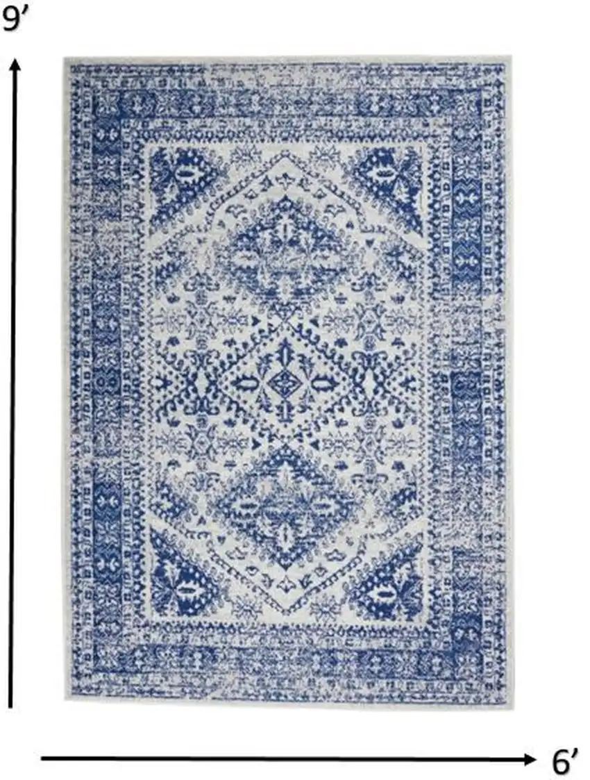 Bring your vision to life with the Ivory and Navy Geometric Area Rug