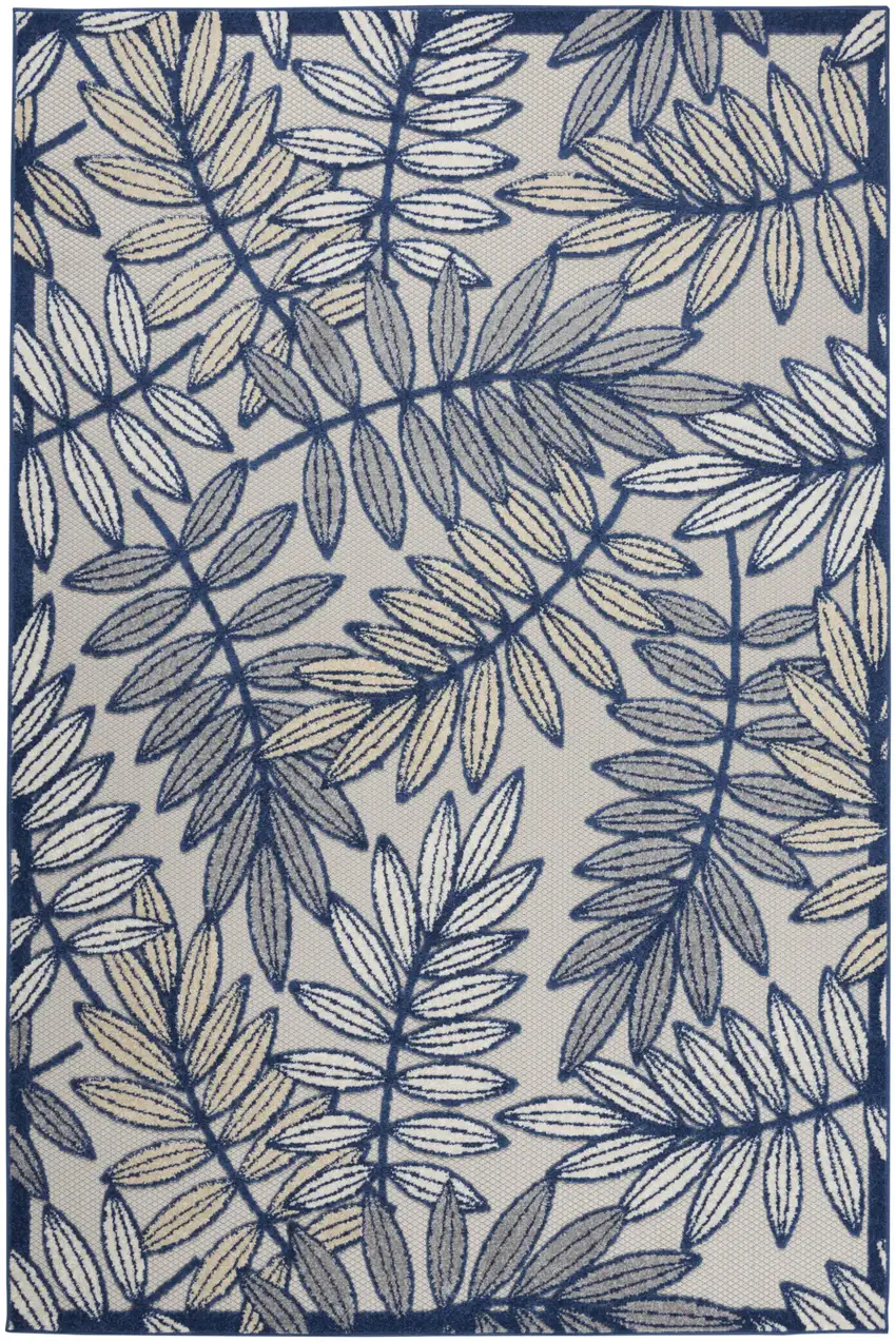 Ivory and Navy Leaves Indoor Outdoor Area Rug