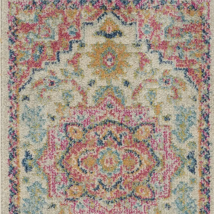 Not only is our Ivory and Pink Medallion Scatter Rug visually captivating, but it also offers unparalleled comfort. Made from plush, soft fibers, every step you take on this rug will feel like a pampering treat for your feet. Whether you're curling up on the couch to watch a movie or walking barefoot in your bedroom, the luxurious feel of this rug will add an extra layer of indulgence to your everyday routines.