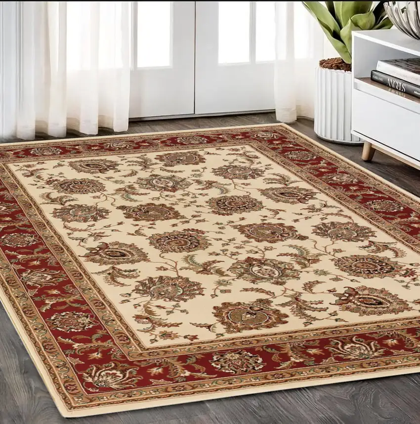 Ivory And Red Oriental Area Rug