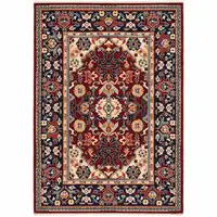 Ivory and Red Oriental Hand Tufted Non Skid Area Rug