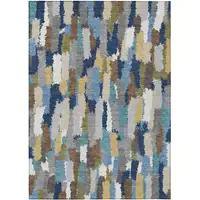 Ivory And Wheat Geometric Washable Indoor Outdoor Area Rug