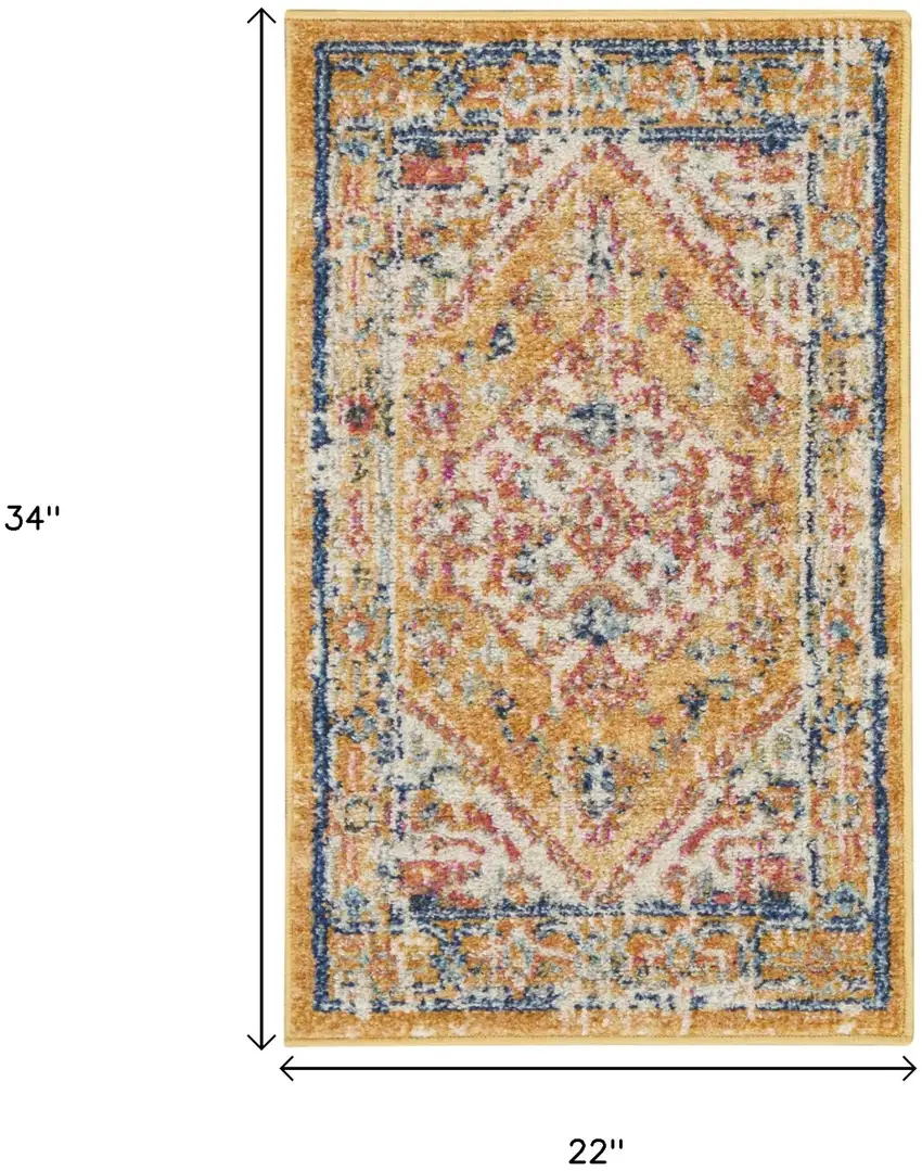 Bring an artistic touch to your living space with this center medallion scatter rug-designed in ivory and yellow hues. Its intricate patterns lend a classic yet modern ambience to any interior.