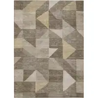 Ivory Beige And Brown Geometric Washable Indoor Outdoor Area Rug