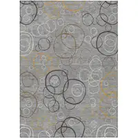 Ivory Beige And Gold Floral Washable Indoor Outdoor Area Rug