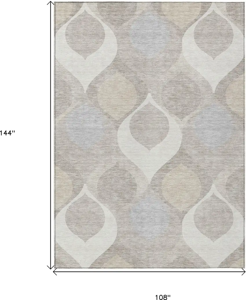 Set an inviting tone in your space with this 9-foot x 12-foot ivory beige and tan ogee washable indoor outdoor area rug. This rectangle shaped rug features a ogee design that will work well both indoors or out. A classic shape marries with good looking design for your living room, hall, bedroom, porch, patio, or poolside. Ideal for outdoor spaces or high traffic areas with kids and pets, this rug is made from heavy duty polyester that is stain resistant to help repel water, dirt, and stains. Versatile in use, durable, and easy to maintain, this rug is an ideal solution to add a decorative and inviting touch to your indoor or outdoor space. 108-inch h x 144-inch w x 0.19-inch d.