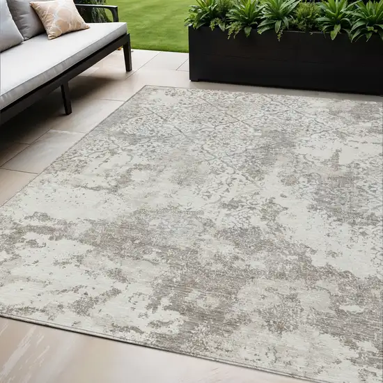 Add great coloration and comfortable texture to your space with this 5-foot x 8-foot ivory beige and taupe floral washable indoor outdoor area rug. This rectangle shaped rug features a floral design that will work well both indoors or out. A classic shape marries with good looking design for your living room, hall, bedroom, porch, patio, or poolside. Ideal for outdoor spaces or high traffic areas with kids and pets, this rug is made from heavy duty polyester that is stain resistant to help repel water, dirt, and stains. Versatile in use, durable, and easy to maintain, this rug is an ideal solution to add a decorative and inviting touch to your indoor or outdoor space. 60-inch h x 90-inch w x 0.19-inch d.