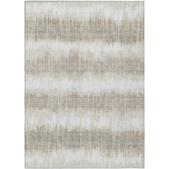 This 3-foot x 5-foot ivory beige and taupe striped washable indoor outdoor area rug, is a great way to add warmth to a room. This rectangle shaped rug features a striped design that will work well both indoors or out. A classic shape marries with good looking design for your living room, hall, bedroom, porch, patio, or poolside. Ideal for outdoor spaces or high traffic areas with kids and pets, this rug is made from heavy duty polyester that is stain resistant to help repel water, dirt, and stains. Makes a great way to dress up your patio, porch, or poolside, but also works well as a durable and easy to maintain option in the kitchen, family room, or mudroom. 36-inch h x 60-inch w x 0.19-inch d.