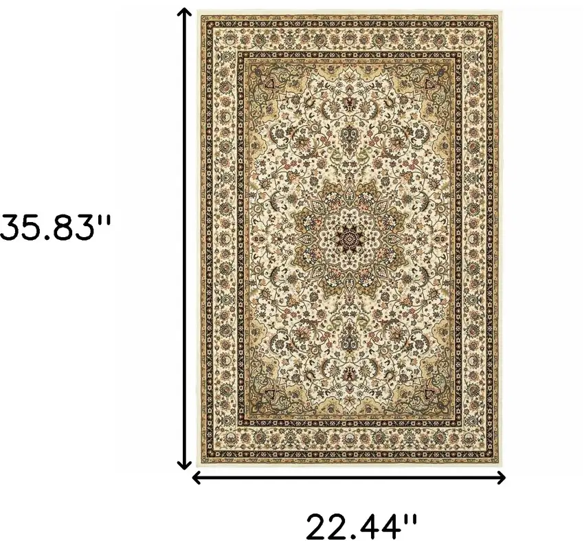 Transform your indoor space with this area rug, featuring an exotic Oriental design in elegant ivory and beige hues. Machine woven for longevity, it's an investment piece that combines style with practicality.
