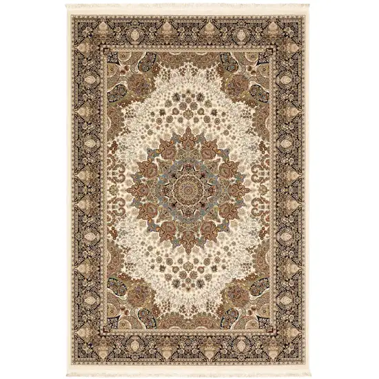 Ivory Black And Tan Medallion Area Rug With Fringe