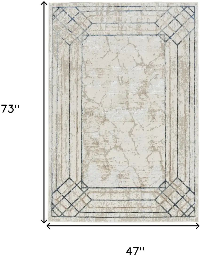 Ivory Black and Taupe Geometric Non Skid Area Rug