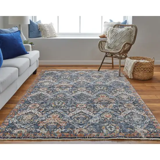 Ivory Blue and Brown Floral Power Loom Area Rug With Fringe