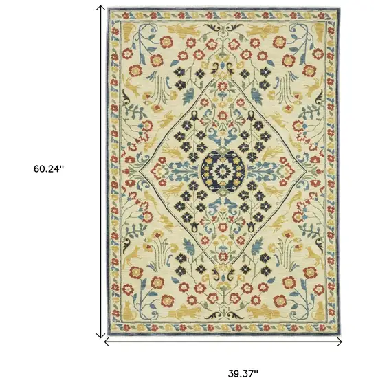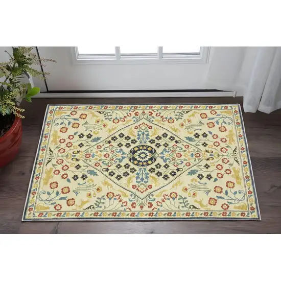 Add some artistry to your room with this 3-foot x 5-foot ivory oriental power loom area rug with fringe. This rectangle shaped rug features a oriental design in ivory to give it visual interest. A classic shape marries with good looking design for your space the coloring of this rug adds a delightfully neutral tone to your home and will easily match with most any decor. Ideal for spaces with kids and pets, this rug is stain resistant to help repel stains and spilled liquids. Tassel ends bring a timeless and fashionable look to your interior. Place this area rug against a hardwood or tile floor and it will enliven your living space with style and sophistication. 39.37-inch H x 60.24-inch W x 0.32-inch D