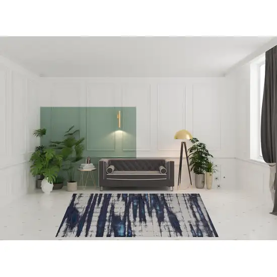 Ivory Blue And Gray Abstract Power Loom Distressed Area Rug