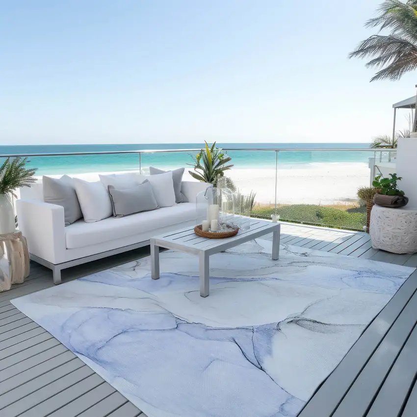 Add great coloration and comfortable texture to your space with this 10-foot x 14-foot ivory blue and gray abstract washable stain resistant non skid indoor outdoor area rug. This rectangle shaped rug features a abstract design in ivory blue and gray to give it visual interest. A classic shape marries with good looking design for your space ideal for spaces with kids and pets, this rug is stain resistant to help repel stains and spilled liquids. Place this area rug against a hardwood or tile floor and it will enliven your living space with style and sophistication. 120-inch H x 168-inch W x 0.19-inch D