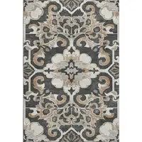 Ivory Blue and Gray Floral Power Loom Washable Non Skid Area Rug