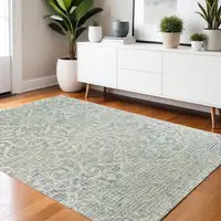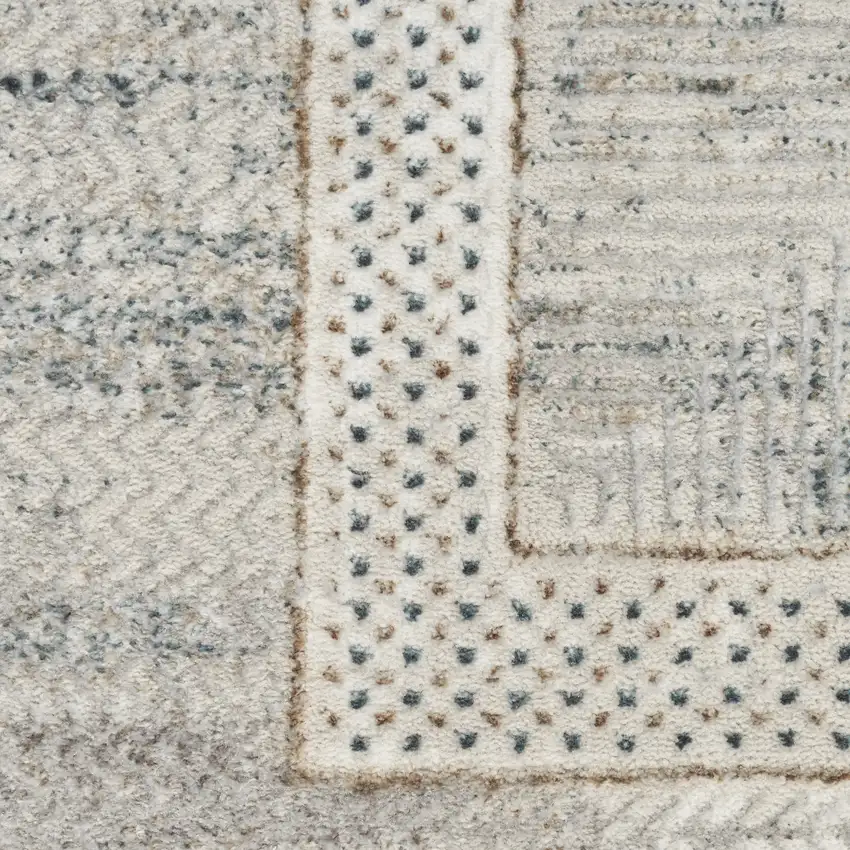 Ivory Blue and Gray Geometric Non Skid Area Rug