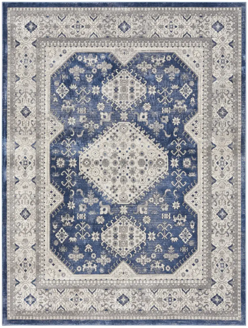Ivory Blue and Gray Oriental Power Loom Area Rug