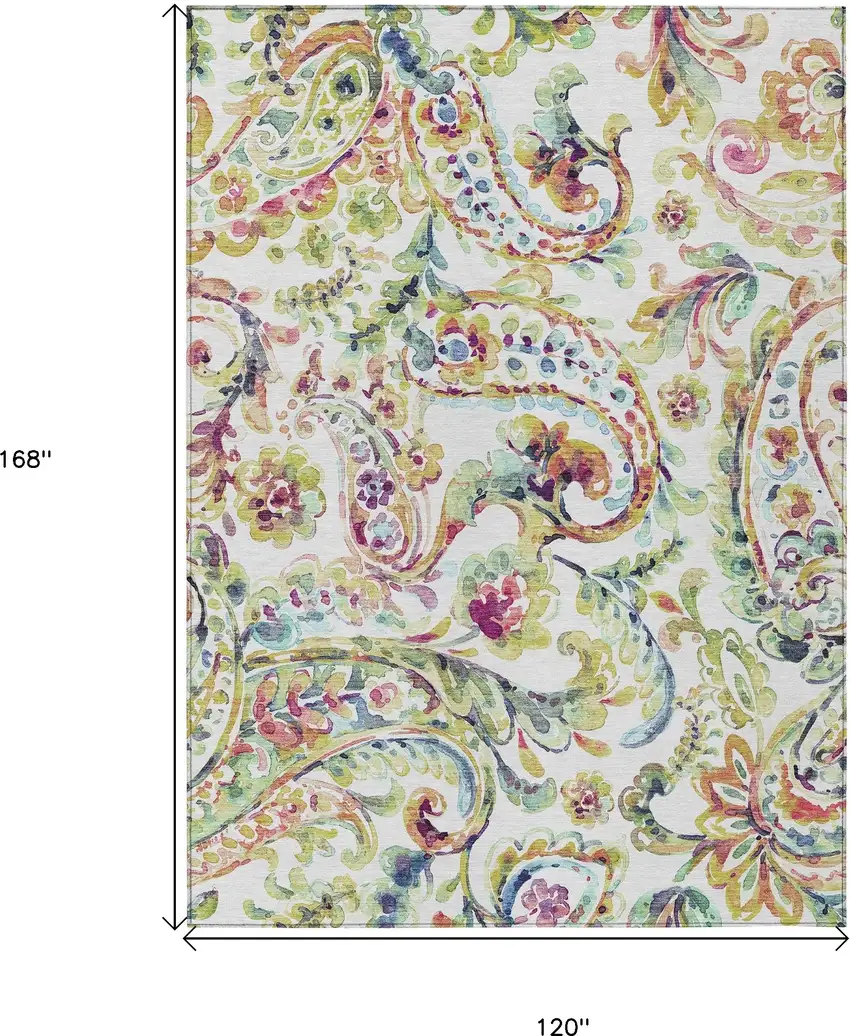 Set an inviting tone in your space with this 10-foot x 14-foot ivory fern green and artichoke green paisley washable indoor outdoor area rug. This rectangle shaped rug features a paisley design that will work well both indoors or out. A classic shape marries with good looking design for your living room, hall, bedroom, porch, patio, or poolside. Ideal for outdoor spaces or high traffic areas with kids and pets, this rug is made from heavy duty polyester that is stain resistant to help repel water, dirt, and stains. Versatile in use, durable, and easy to maintain, this rug is an ideal solution to add a decorative and inviting touch to your indoor or outdoor space. 120-inch h x 168-inch w x 0.19-inch d.