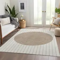 Ivory Fern Green And Beige Floral Washable Area Rug With UV Protection