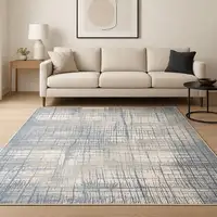 Ivory Gray And Beige Geometric Washable Area Rug With UV Protection