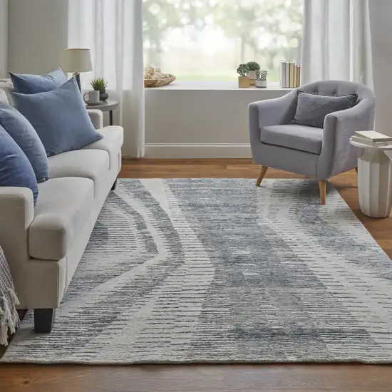 This 3-foot x 5-foot ivory gray and blue abstract hand knotted worn faded area rug, is a great way to add warmth to a room. This rectangle shaped rug features a abstract design in ivory gray and blue to give it visual interest. A classic shape marries with good looking design for your space crafted by skilled artisans, this hand knotted rug is genuine and unique. No two will be exactly alike. Place this area rug against a hardwood or tile floor and it will enliven your living space with style and sophistication. 36-inch H x 60-inch W x 0.31-inch D