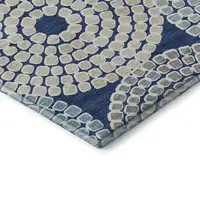 Ivory Gray and Blue Abstract Power Loom Area Rug With Fringe
