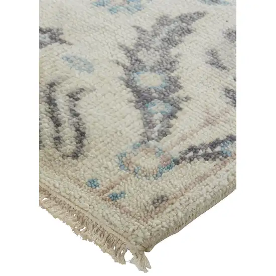 Ivory Gray And Blue Wool Floral Hand Knotted Stain Resistant Area Rug
