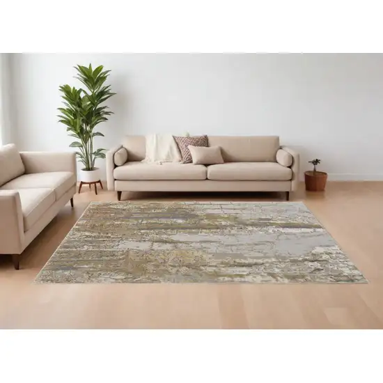 Ivory Gray and Brown Abstract Power Loom Area Rug