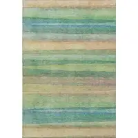 Ivory Green and Blue Abstract Power Loom Worn Faded Area Rug