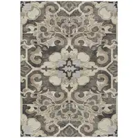 Ivory Green And Tan Floral Washable Indoor Outdoor Area Rug