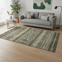 Ivory Green Brown Blue And Rust Floral Power Loom Stain Resistant Area Rug