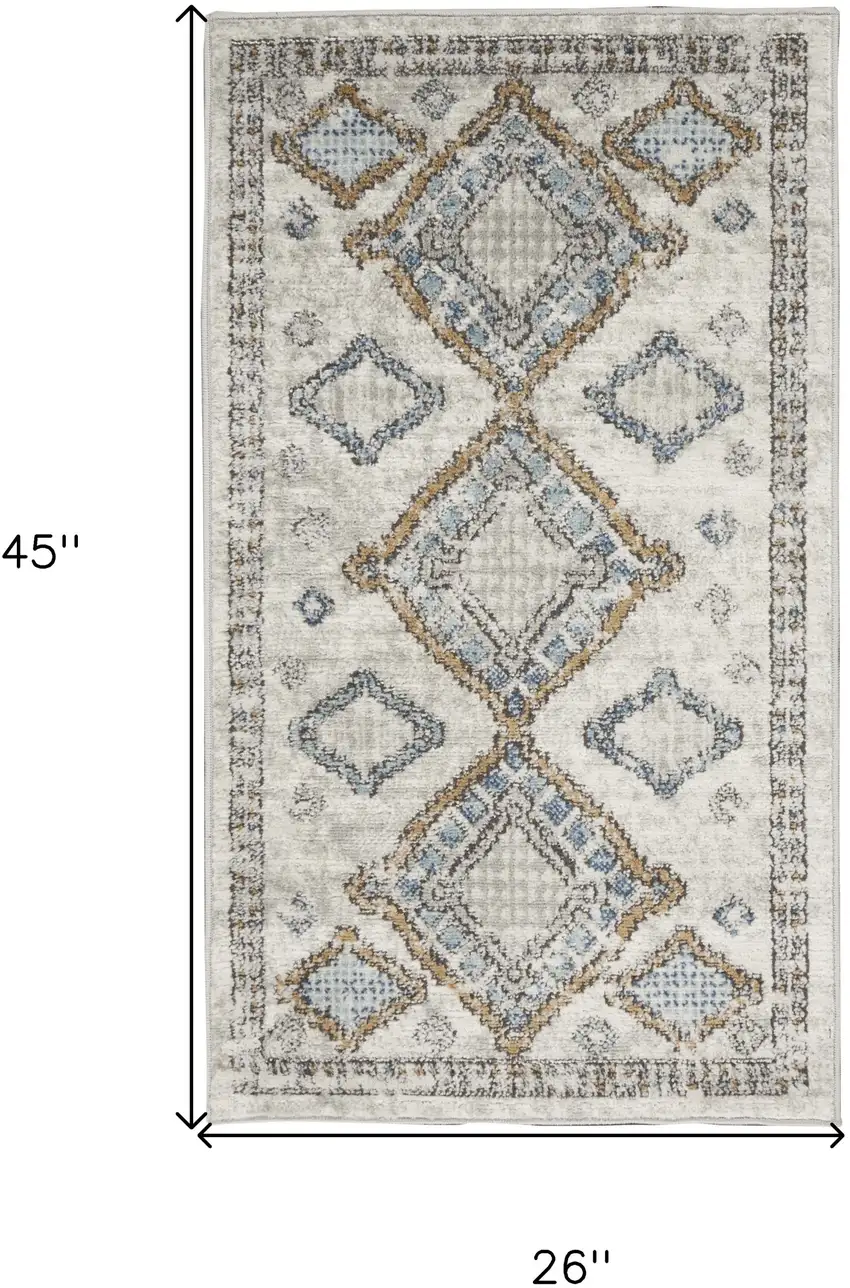 Ivory Grey And Blue Southwestern Power Loom Non Skid Area Rug