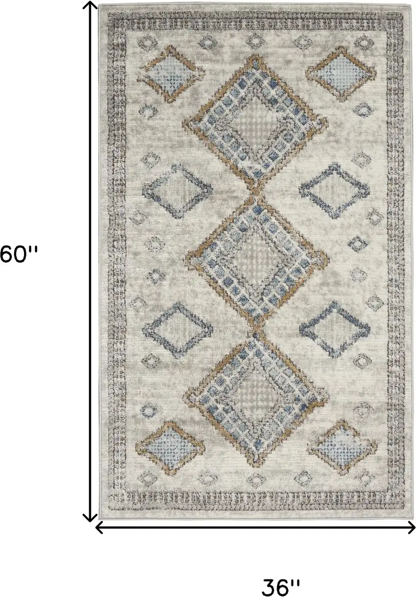 Ivory Grey And Blue Southwestern Power Loom Non Skid Area Rug