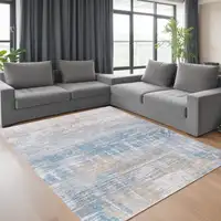 Ivory Grey Charcoal Blue And Taupe Oriental Power Loom Stain Resistant Area Rug