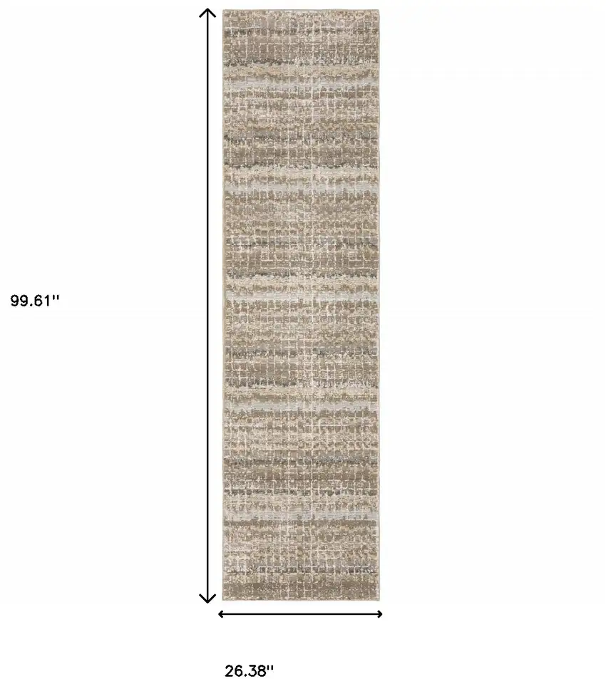 Ivory Grey Tan And Brown Abstract Power Loom Stain Resistant Runner Rug