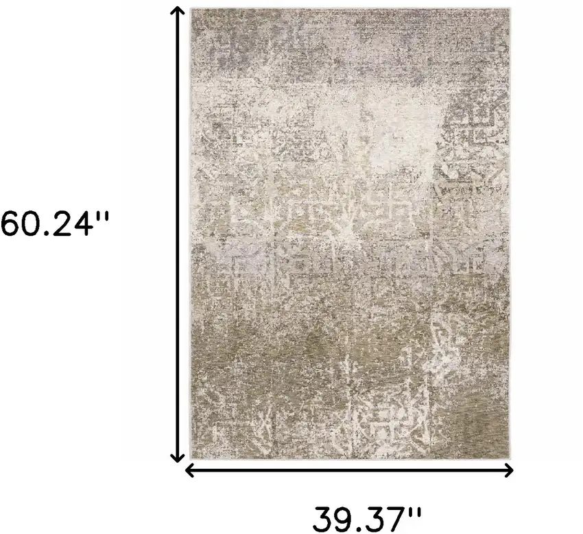 Ivory Grey Tan Brown And Beige Abstract Power Loom Stain Resistant Area Rug