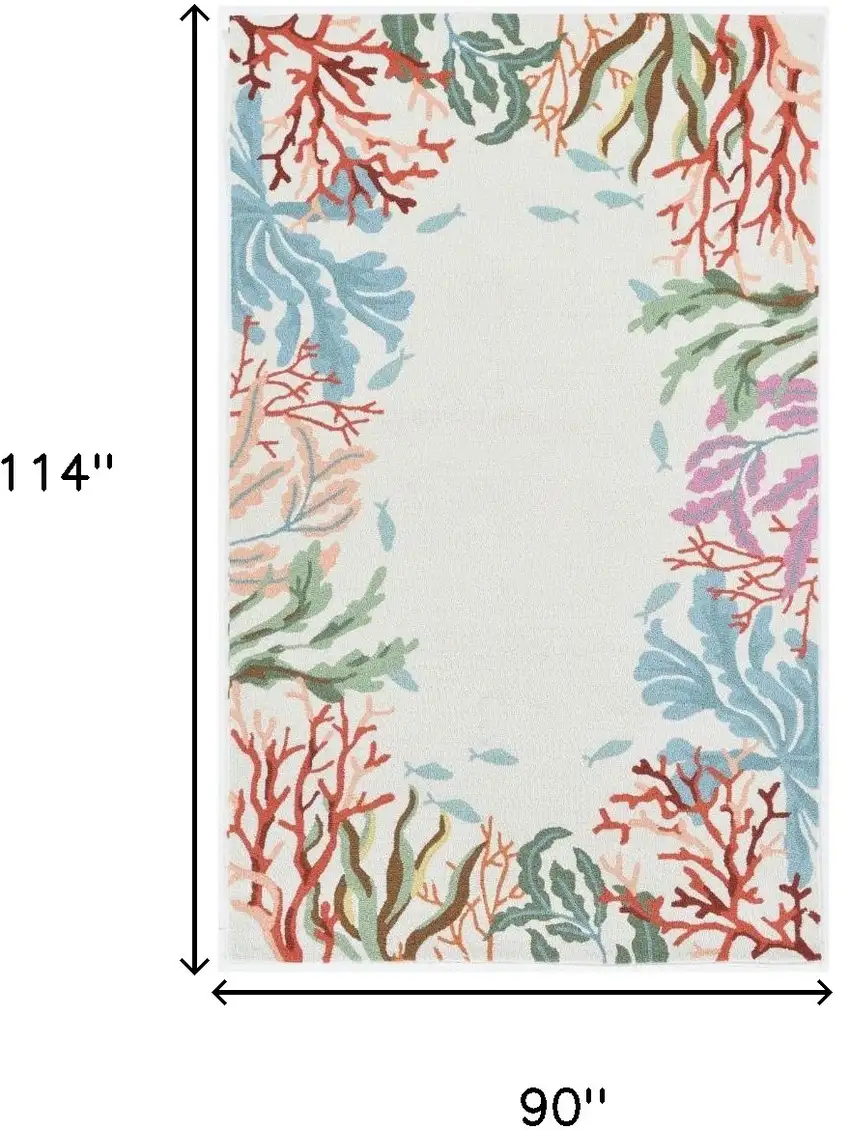 Ivory Hand Hooked Bordered Coral Reef Indoor Area Rug
